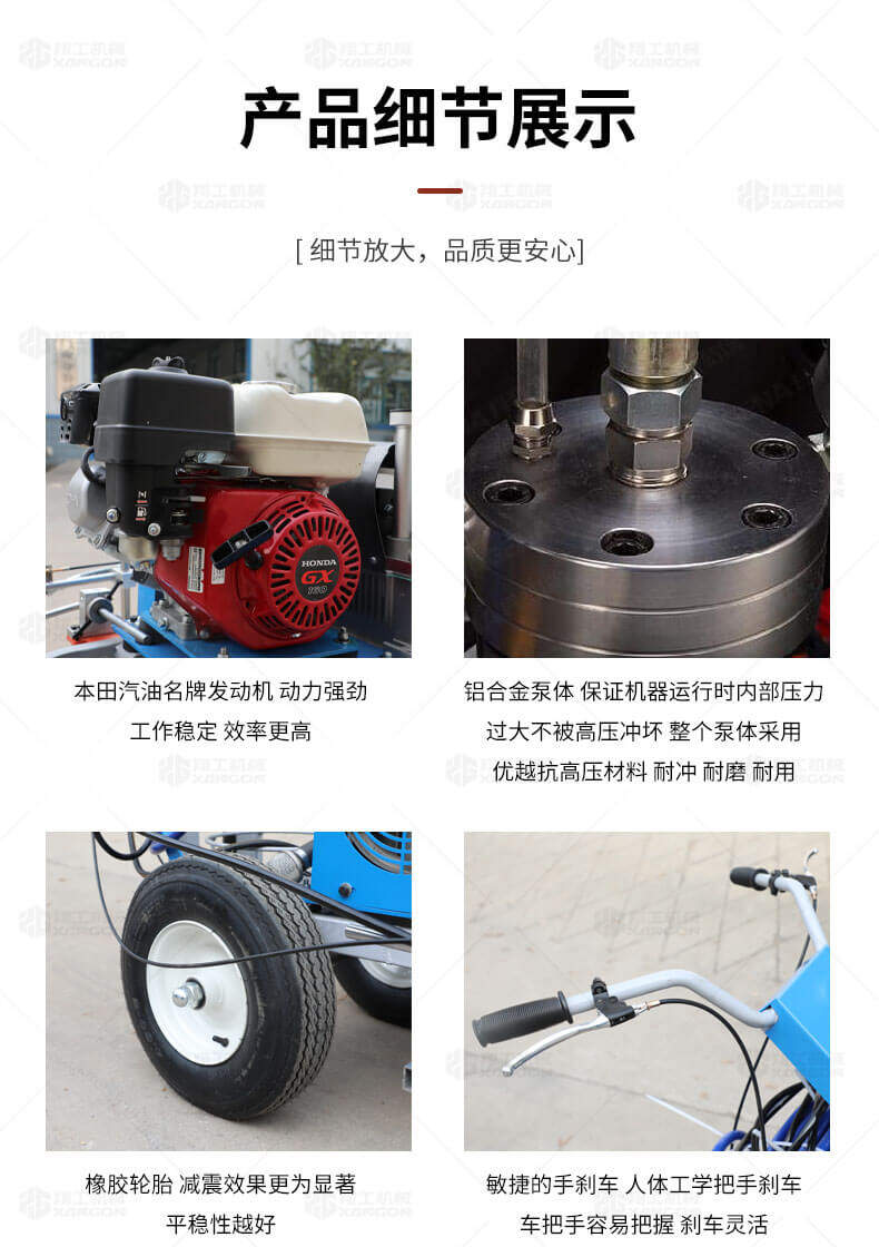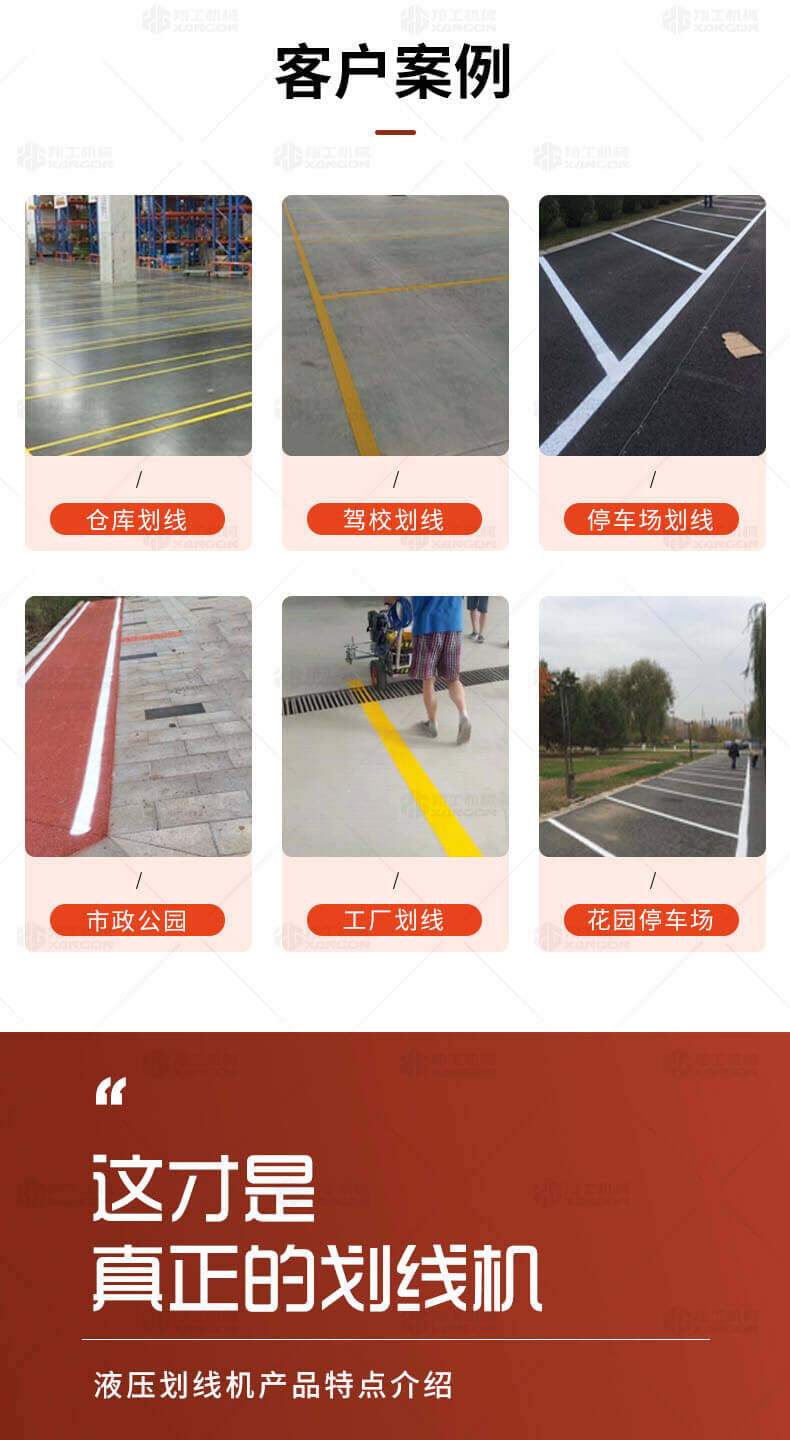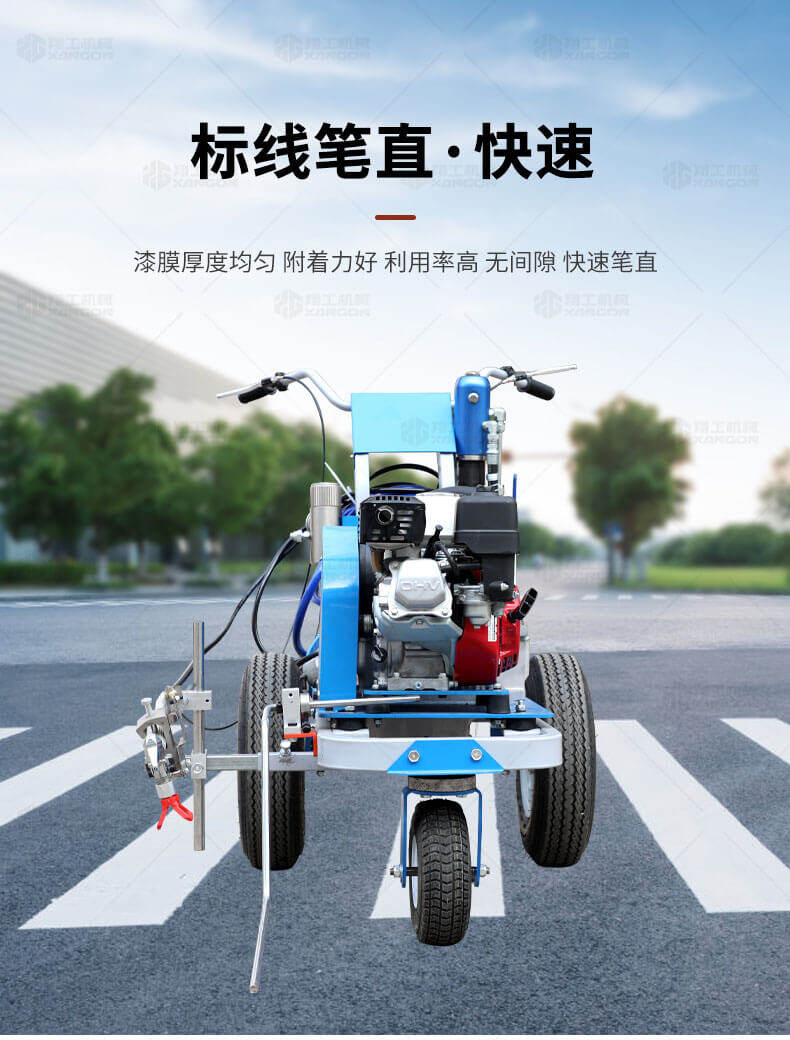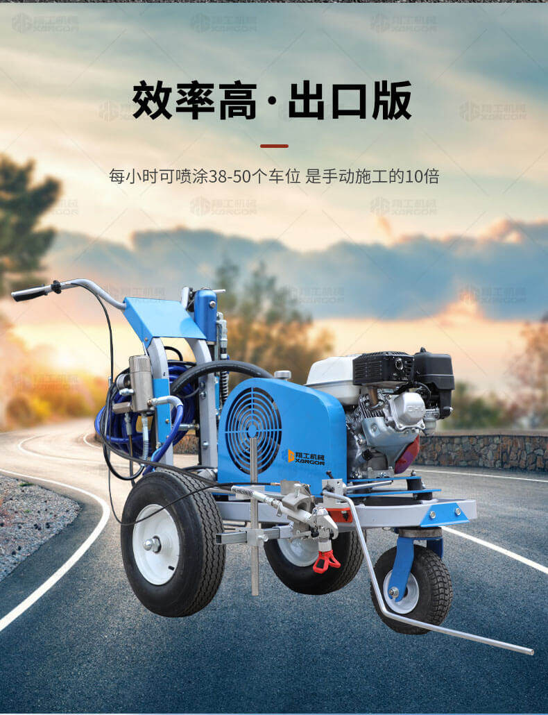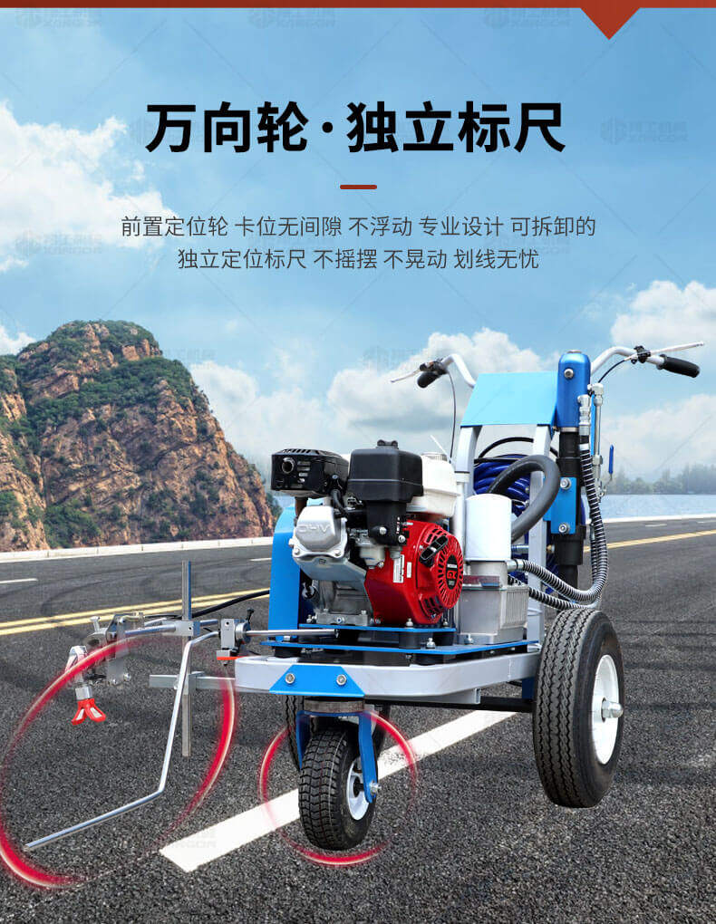 小型手推式道路划线机是一种在道路、停车场、广场和跑道等平整地面上划出不同约束、指引和警示等规则限制标志的路面施工机械。最常见的就是在马路上划斑马线,在路上划车库线、停车线等等应用于小型工程、短途施工,活动方便,灵活操作。