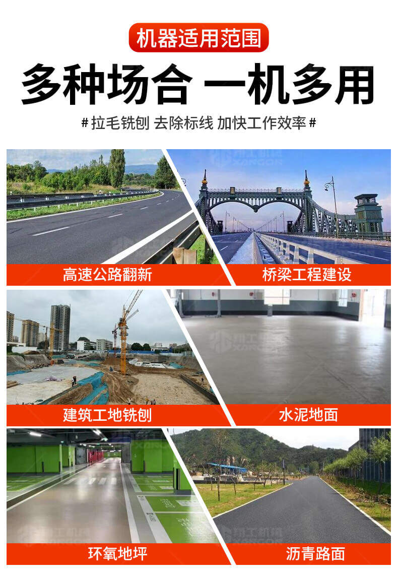 凿毛铣刨机多种场合一机多用,拉毛铣刨去除标线加快工作效率.