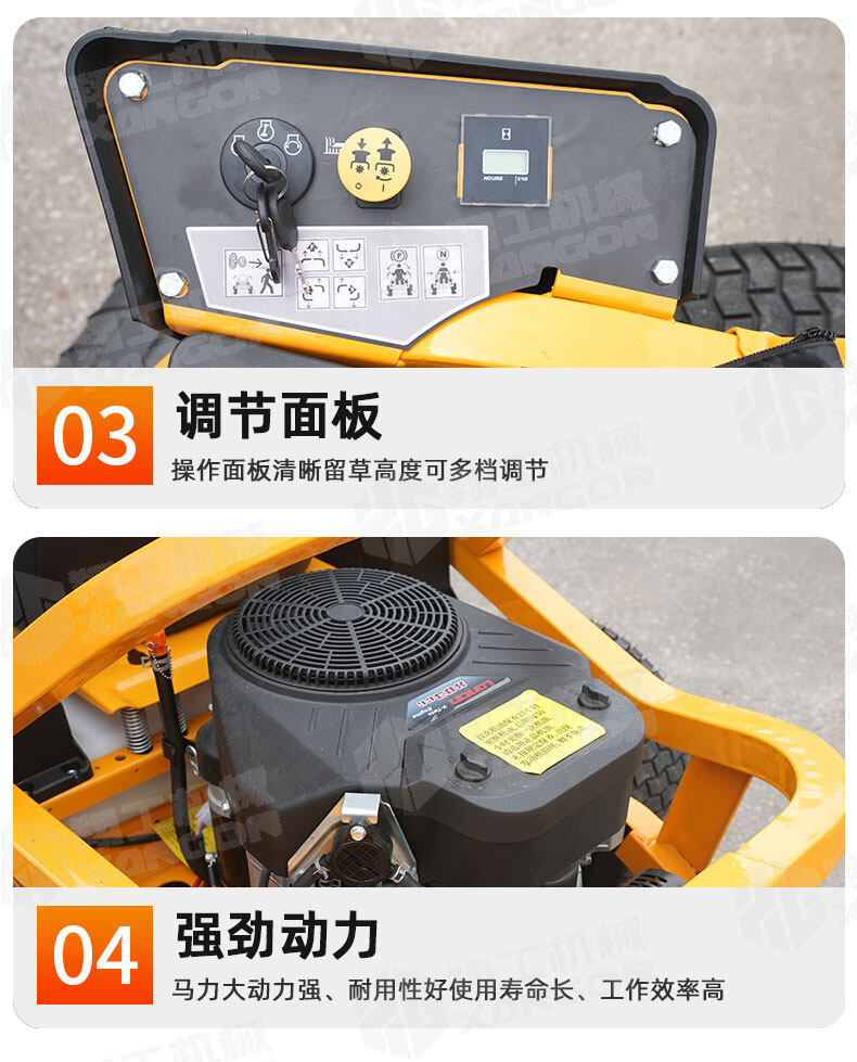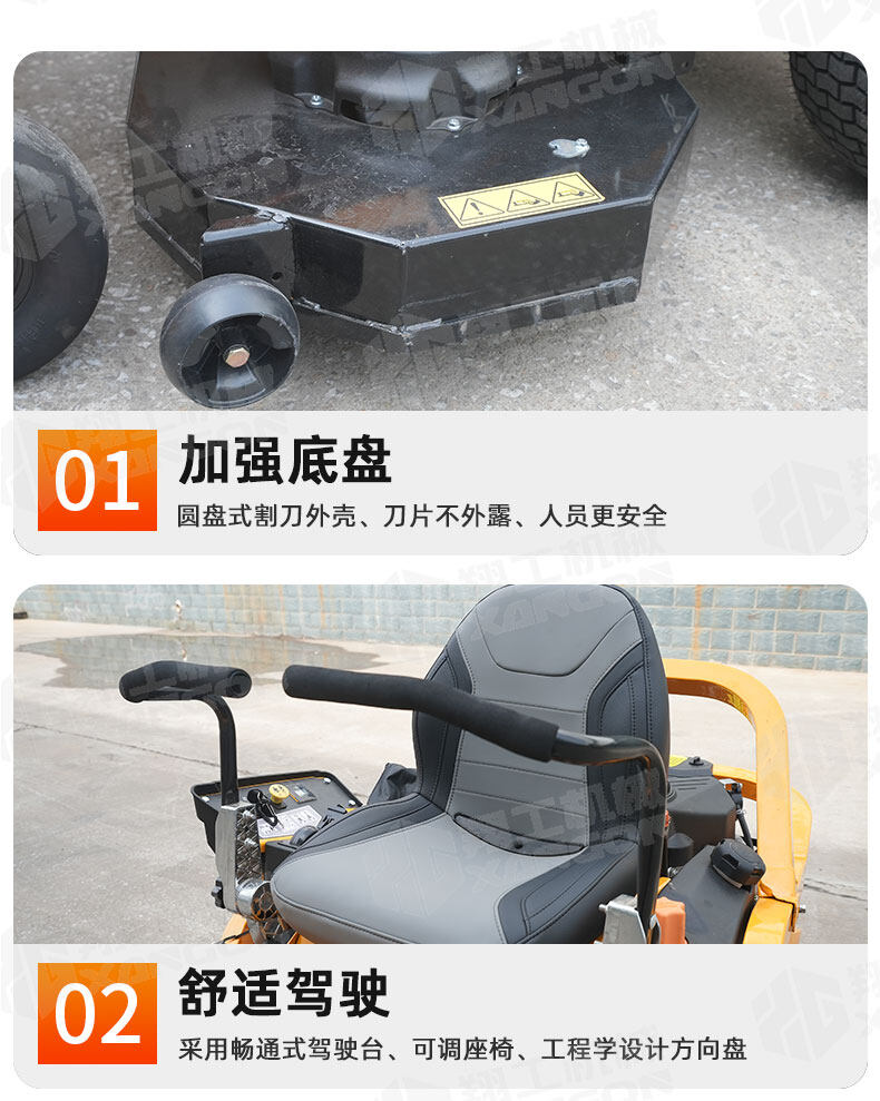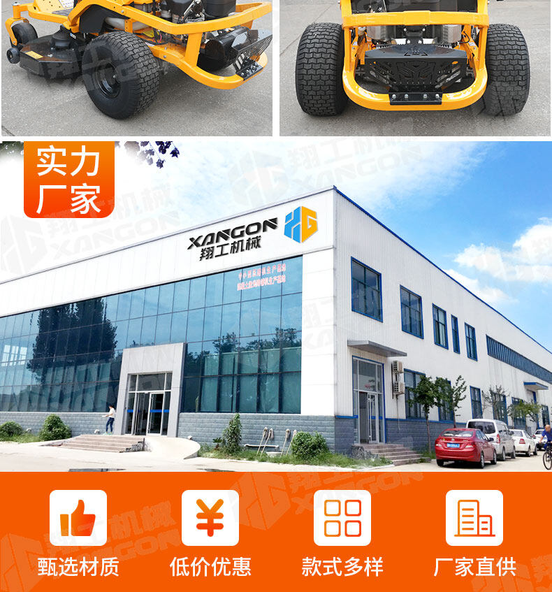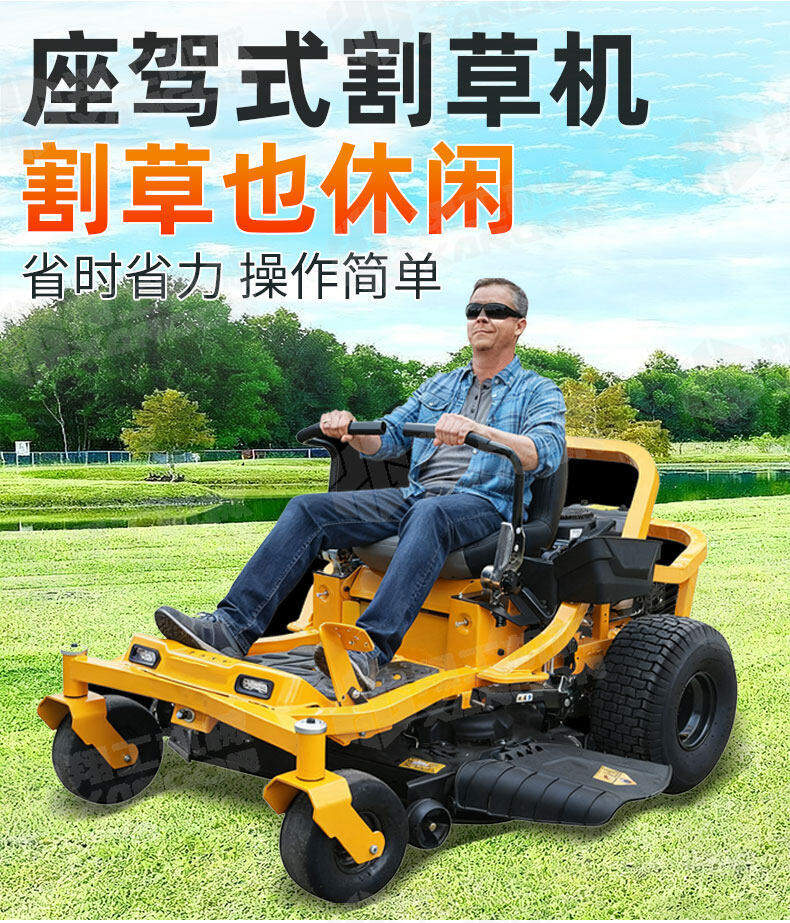 座驾遥控割草机——高效园林管理新选择。该产品集座驾操控与远程遥控于一体,兼具舒适性与便捷性。它动力强劲,爬坡越障能力强,适用于公园、庄园、大型草坪等多种场景。配备高效割草系统,割茬平整,作业效率极高,能显著降低人工成本,是专业草坪养护的理想设备。
