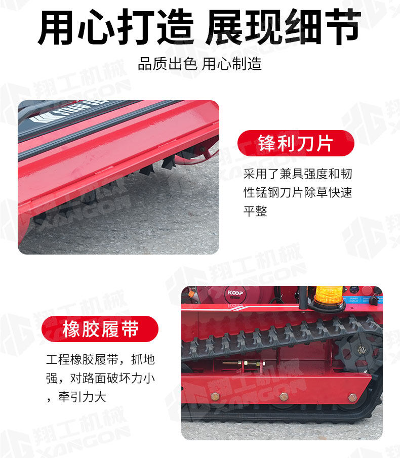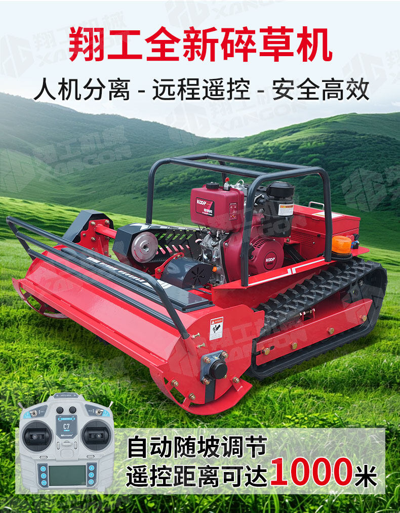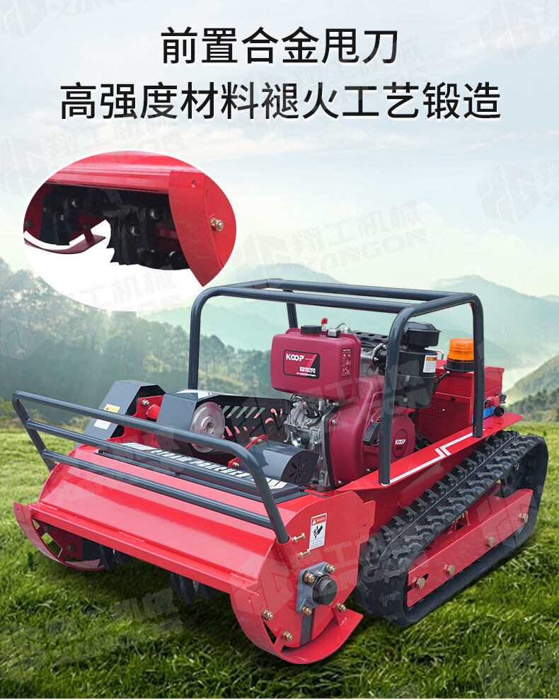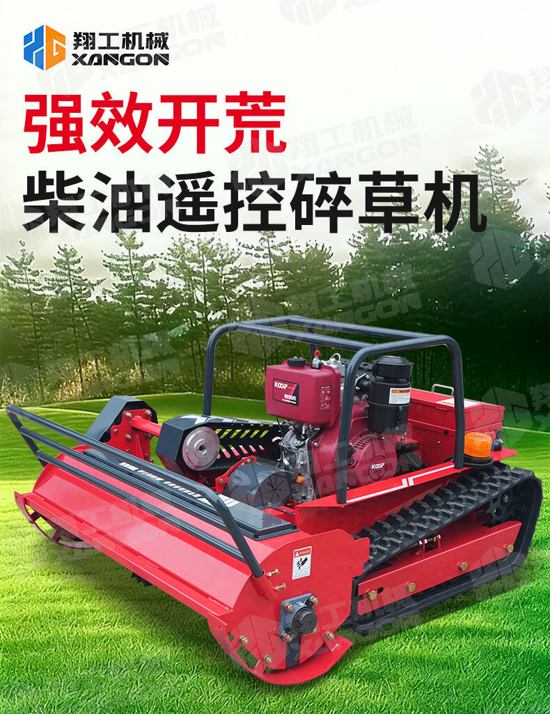 本款柴油遥控割草机是一款动力强劲、专为恶劣工况设计的大型专业设备。它采用高性能柴油发动机,扭矩大,续航持久,能轻松应对陡坡、湿地等复杂地形。先进的无线遥控技术确保了操作人员的安全,实现了远距离高效、精准割草。特别适用于园林绿化、堤坝养护、机场周边等大面积和危险区域的除草作业。