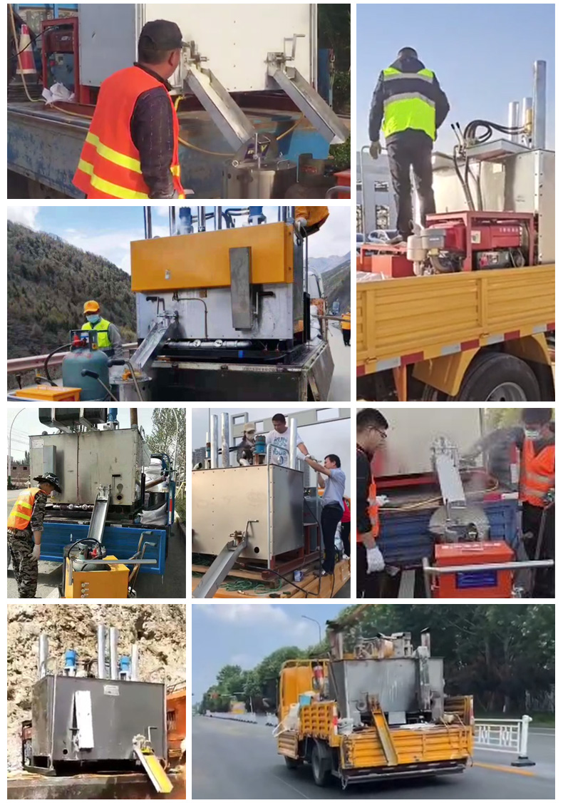 XG1200液压双缸热熔釜是一款热熔标线施工的主要设备之一。标线施工时,先利用热熔釜将粉末状涂料加热,搅拌,直到热熔变成液态后,再将涂料放入划线机内进行划线施工。