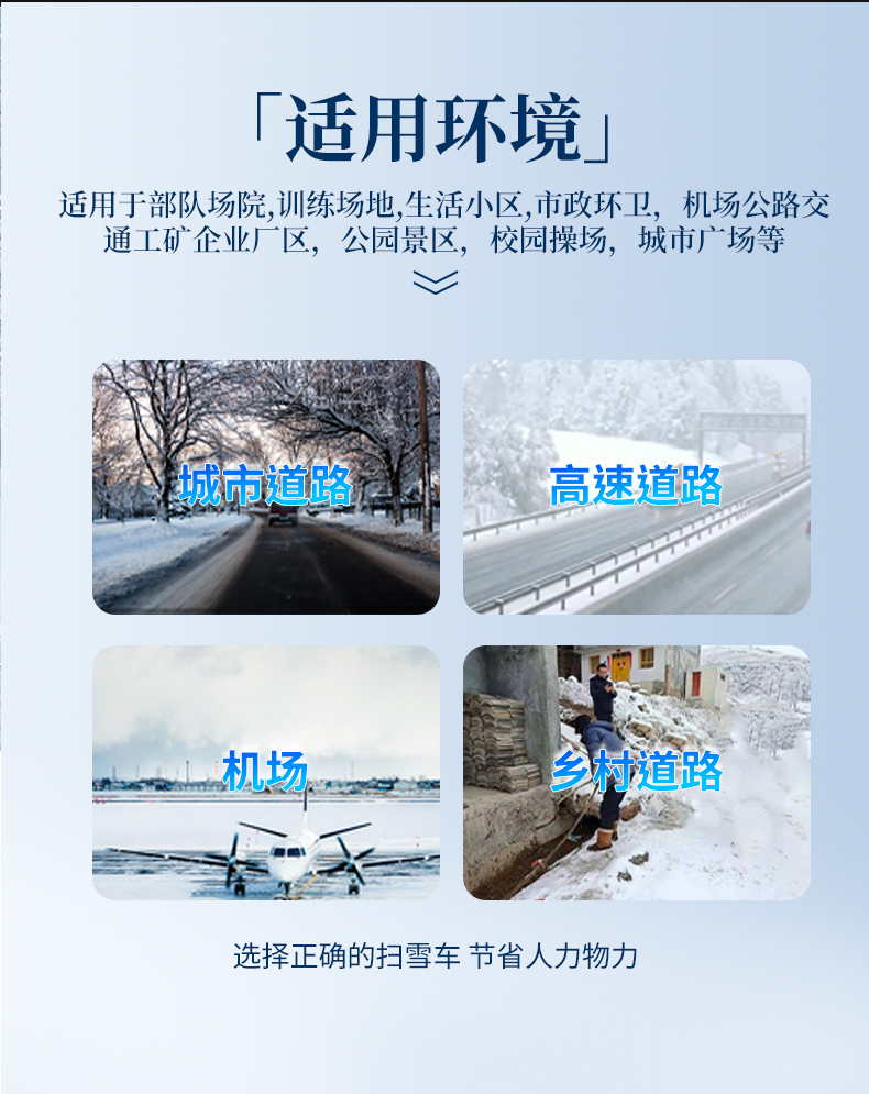 冬天如果下雪就会导致路面结冰,给我们的出行造成阻碍,所以我们这款暴风雪扫地机清扫路面能够一次清理干净积雪,保证路面清扫之后的出行安全,采用硬度适中的毛刷不损伤标志线,不损伤路面,这是一台环保型除冰雪车,除雪效率非常高,更加适合路面清扫积雪使用。