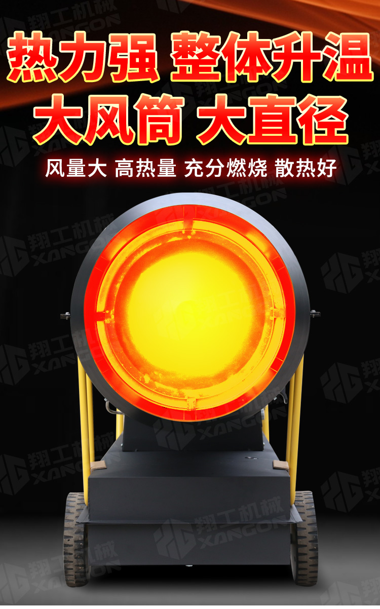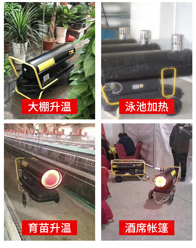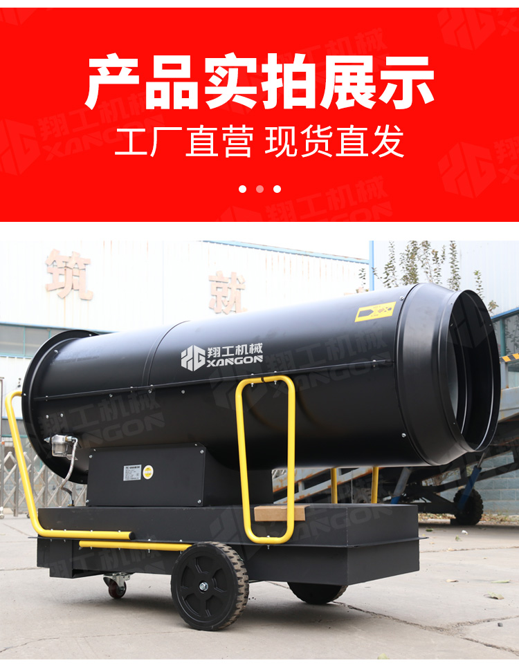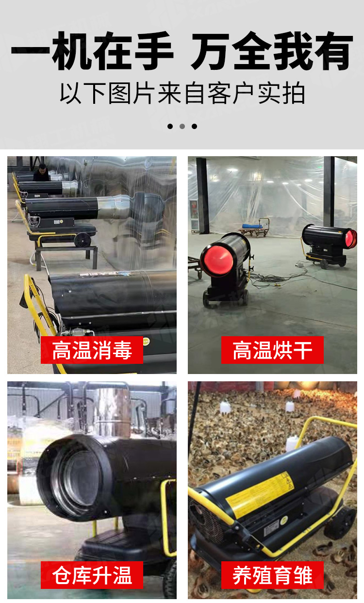 用于大场景消毒房高温杀菌,畜牧养殖业取暖,蔬果大棚取暖,建筑烘干取暖,木材烘干等;