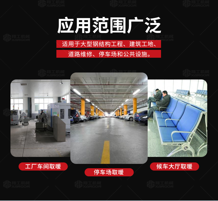 此款燃气暖风机适用于工厂车间、办公室、酒店、酒吧、饭店、餐厅、大厅、展厅、咖啡店.天井、花园、步行街、站亭、运动馆、步行街、大型会议室、别墅庭院及户外休闲等空气流通好的场所。