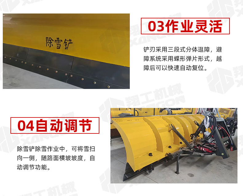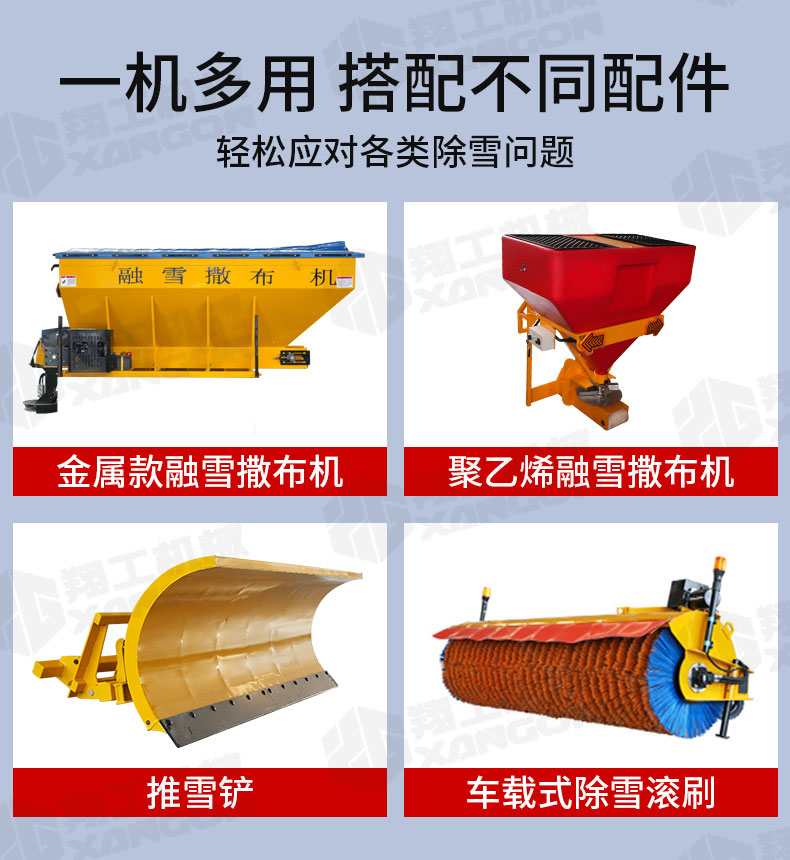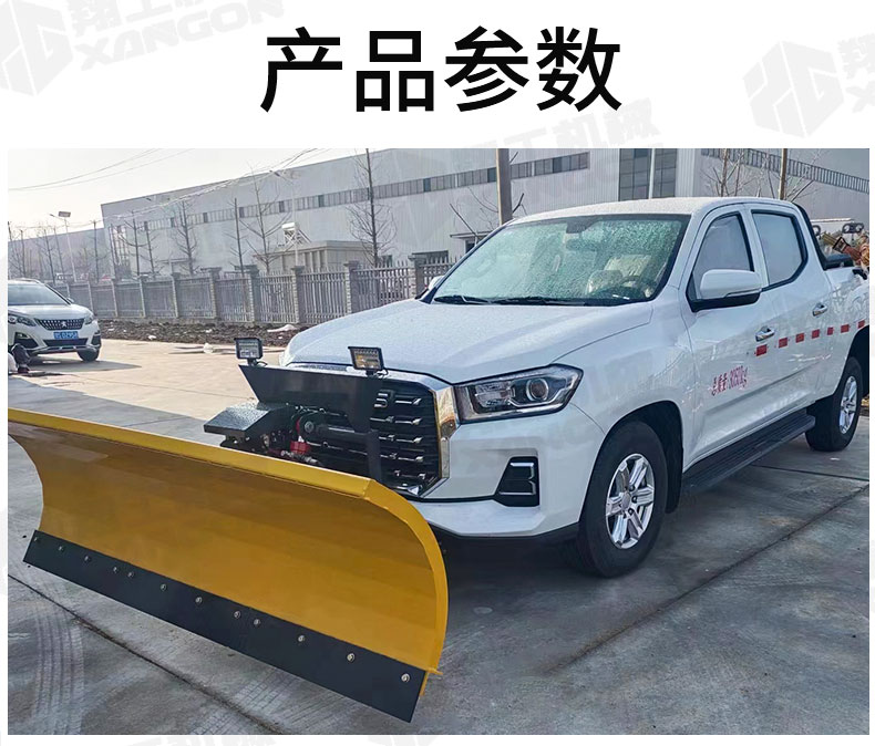 用途以皮卡车为底盘车配备前置除雪铲、后置液体撒布机,专用于机场跑道等区域除雪融雪作业,也可换装扫雪滚刷进行扫雪作业。