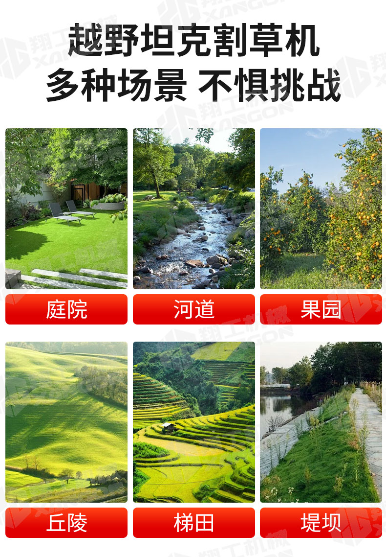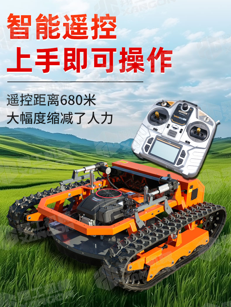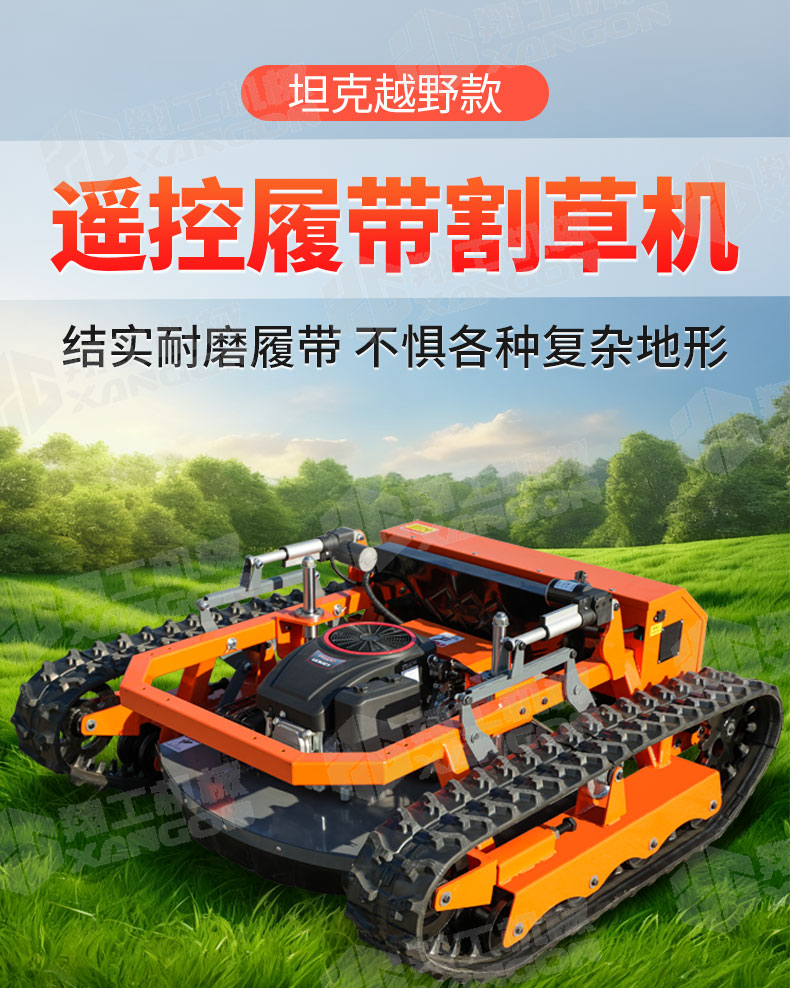 XG-1200是一款革新性的遥控坦克割草机,专为复杂地形设计。其独特的橡胶履带底盘,具备卓越的越野与爬坡能力,轻松应对陡坡、湿滑及不平整草坪。无线遥控操作,灵活精准,极大提升了割草效率与安全性,是果园、荒地及专业园艺工作的理想之选。