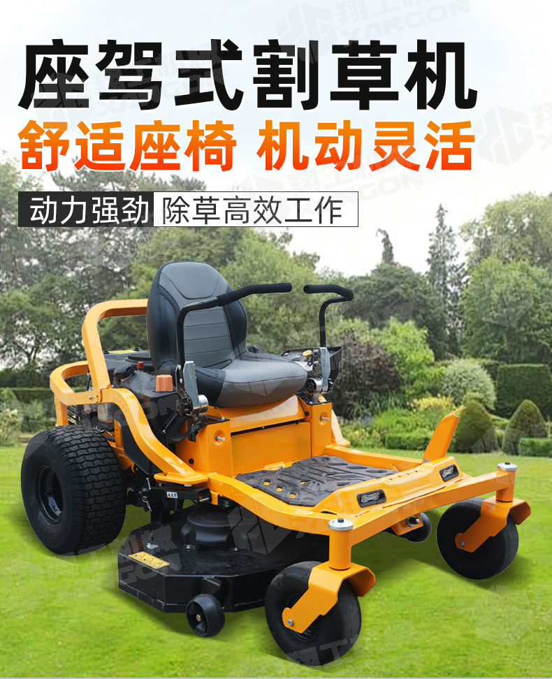 座驾遥控割草机——高效园林管理新选择。该产品集座驾操控与远程遥控于一体,兼具舒适性与便捷性。它动力强劲,爬坡越障能力强,适用于公园、庄园、大型草坪等多种场景。配备高效割草系统,割茬平整,作业效率极高,能显著降低人工成本,是专业草坪养护的理想设备。