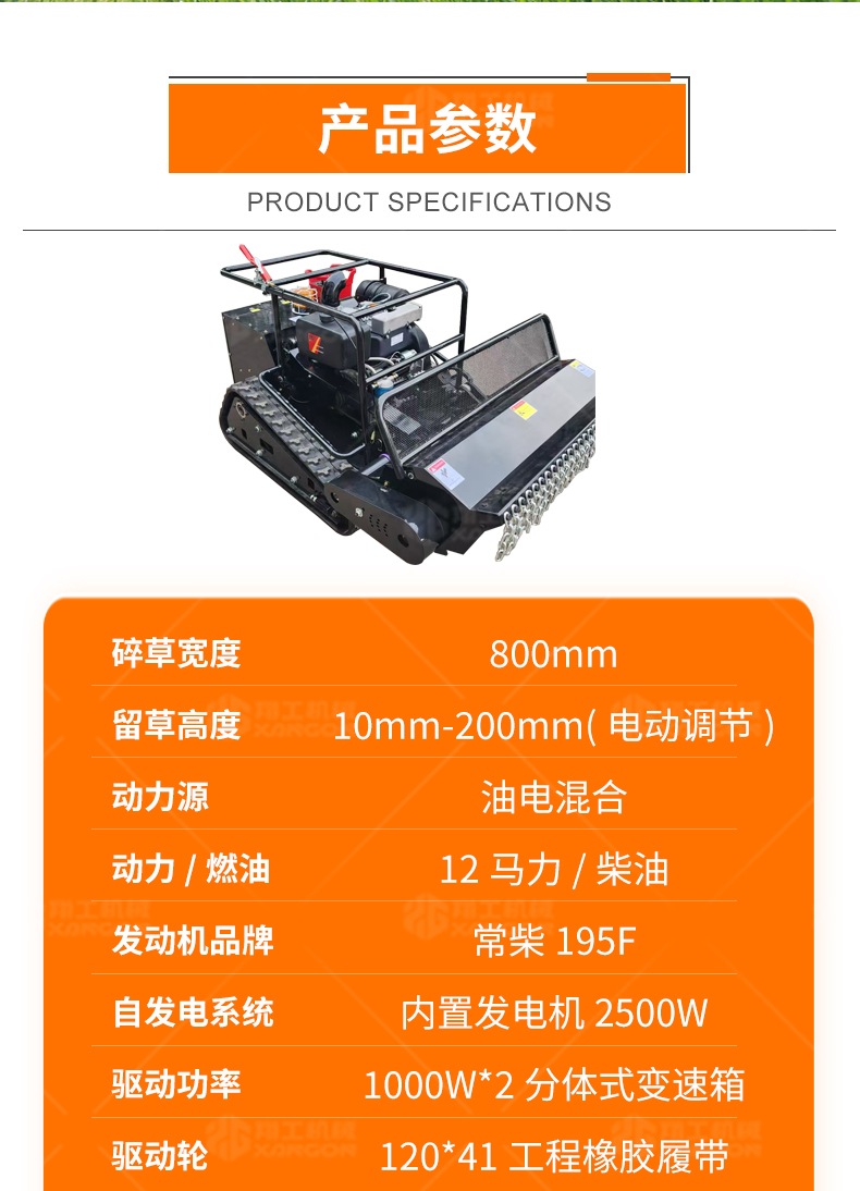 主动型800遥控碎草机是一款高效园林处理装备。它采用强劲动力与重型刀片设计,能轻松粉碎各类园林垃圾。先进的遥控操作技术提供远距离安全作业能力,极大地提升了工作效率并降低了劳动强度。该机粉碎效果好,碎屑可用于生态还肥,是实现园林废弃物循环利用的理想选择。