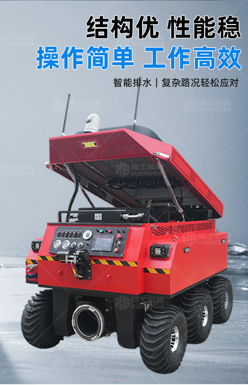 800方排水机器人是一款智能遥控应急排水装备,最大流量达800立方米/小时。集成自主行走、智能绕障与全景监控功能,可实现远距离无人化安全作业。特别适用于深积水、易燃易爆及危险环境下的全天候抢险救援,大幅提升排水效率与人员安全。