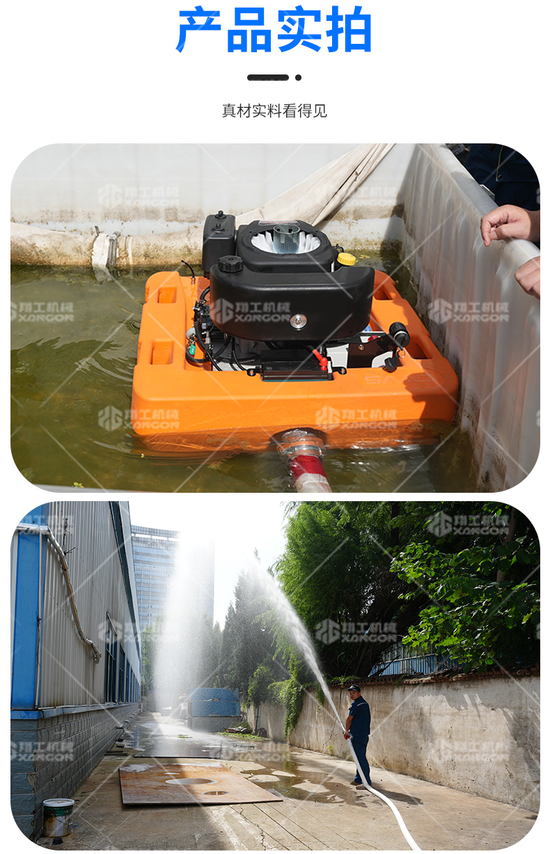 新款浮艇泵是一款高效移动式排水装备。采用轻量化自浮式设计,无需固定安装,可直接投入水面作业。启动快速,拥有强大抽排能力,特别适用于浅滩、沟渠、城市低洼地等复杂积水场景的紧急抢险,是灵活机动的应急排水利器。