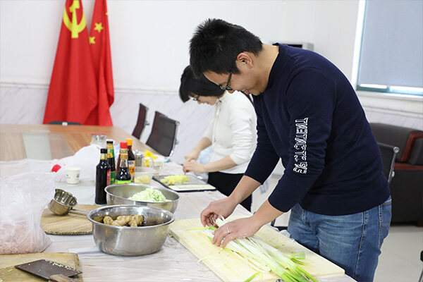 冬至宴热闹有序的进行着,大家分工明确,以饱满的热情投入这场活动中,先开始行动的就是我们的采买小队,精心挑选食材,交于我们的帅哥-调馅担当。