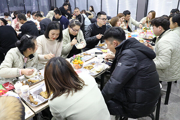 一顿操作之后已经香气扑鼻,我们的包饺子大队开始行动了!大家热情高涨,踊跃参与,整个包饺子过程,欢声笑语不断,大家齐心协力、精诚合作,一排排各具个性的饺子很快就摆满了盘子(这些各具个性的饺子中有惊喜等着大家呦,详情活动揭晓)。接下来饺子下锅,静等冬至宴会开始!