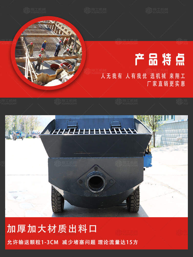 这款30KW浇筑泵优势多多,性能可靠,设备各个结构制造科学,电机功率大、性能稳定、施工效率高等优势,使用电动浇筑泵大大提高了施工效率,降低劳动强度,节约人工,被广泛应用。是工程施工的好帮手。