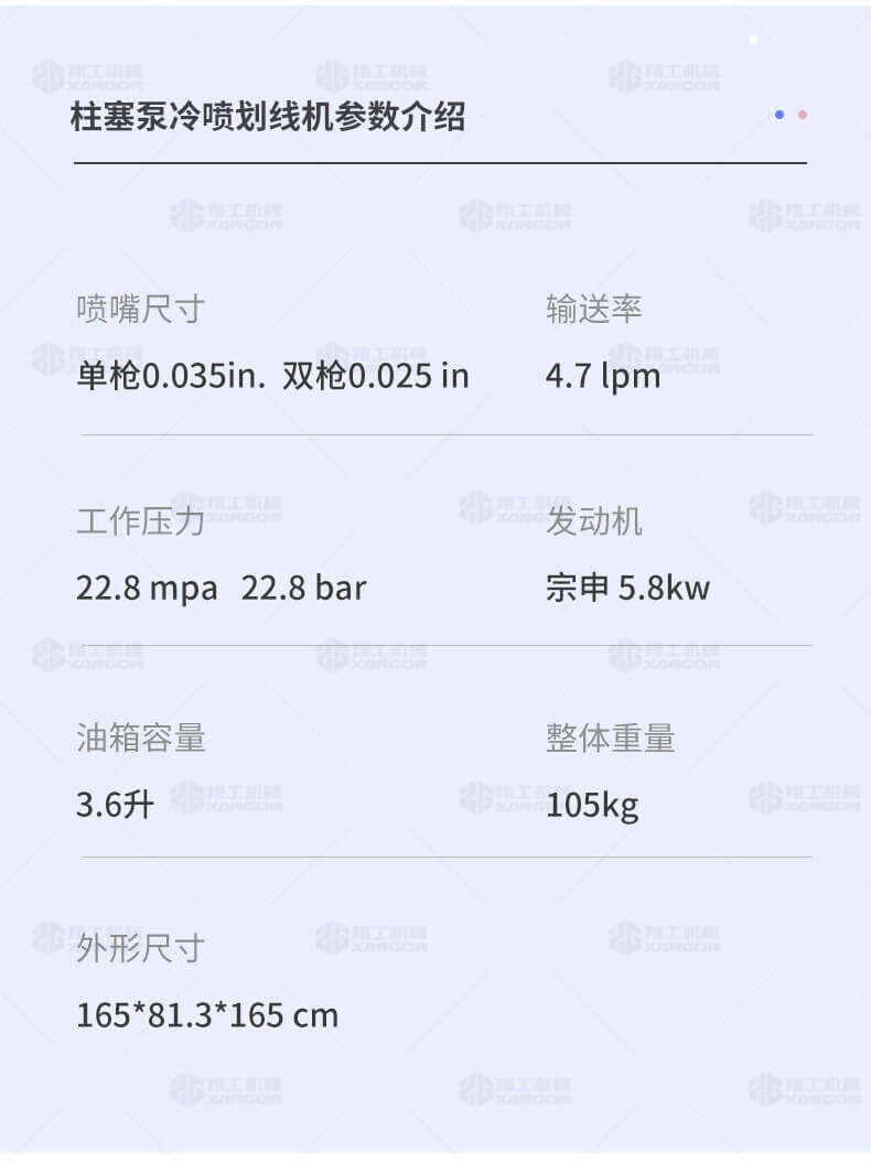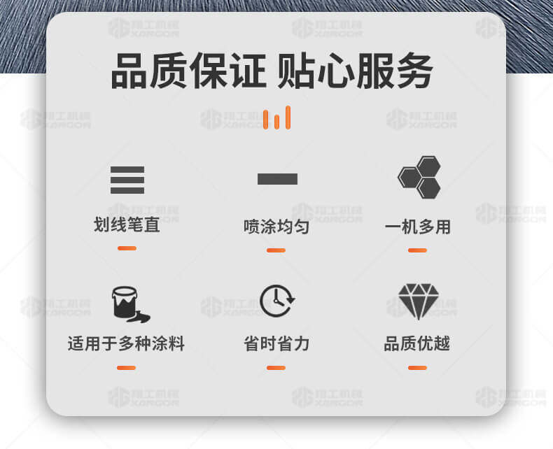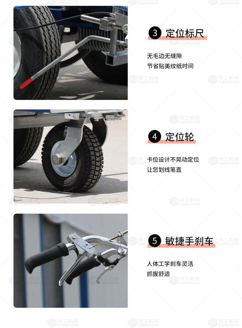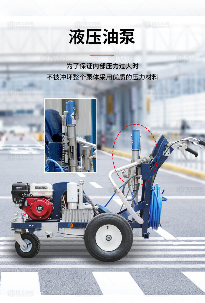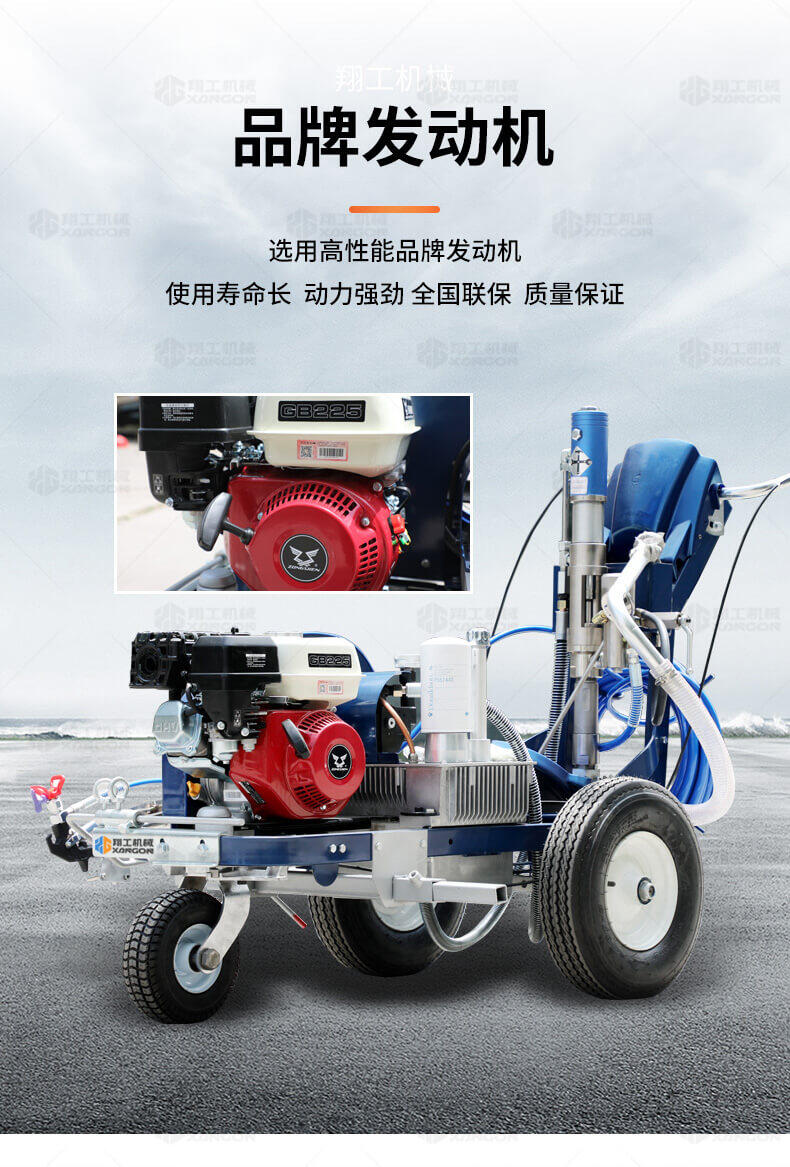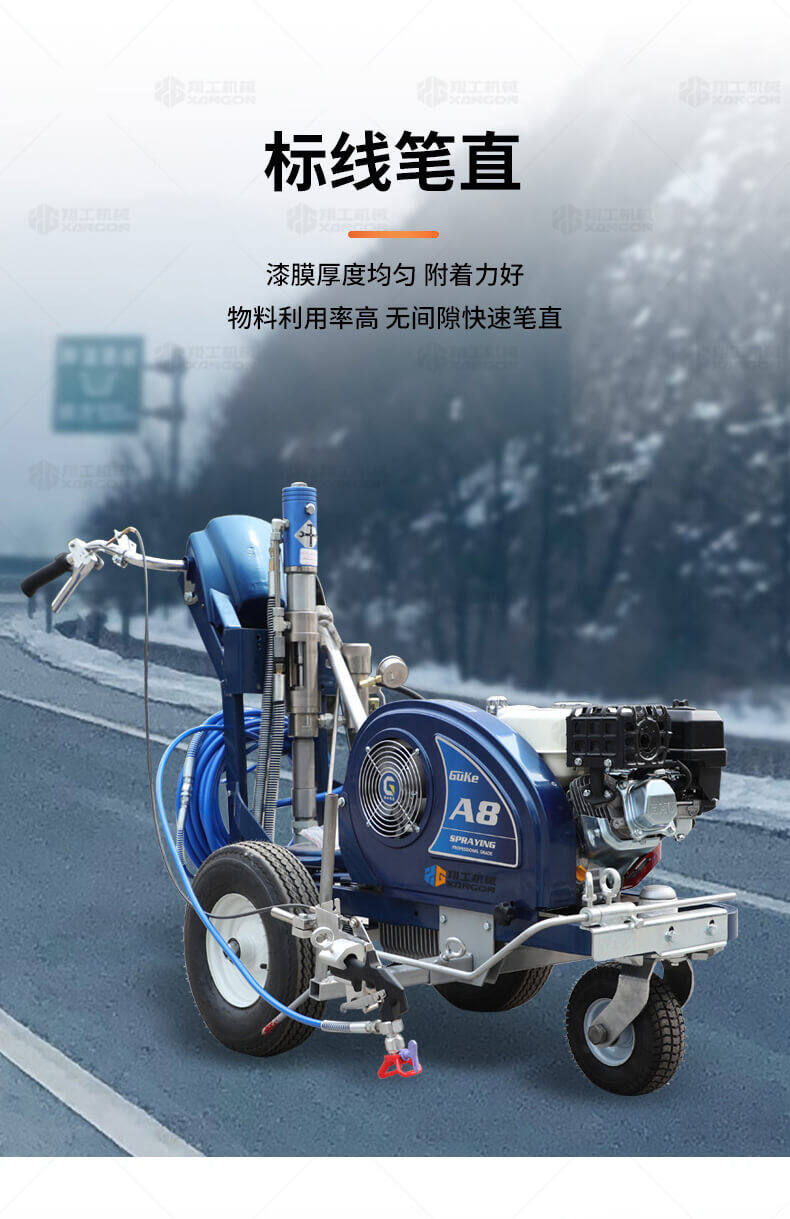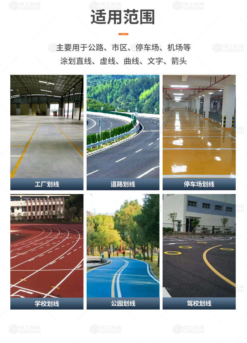 主要用于公路、市区、停车场、机场等涂划直线、虚线、曲线、文字、箭头等。具有划线效果好、速度快、效率高、适用范围广、使用方便等优点。