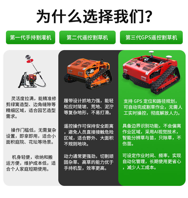 【GPS卫星定位遥控割草机】搭载高精度GPS定位系统,支持远程遥控与自主路径规划,轻松应对复杂地形。具备智能避障、雨天保护及电子围栏功能,一键操作即可高效完成割草任务。省时省力,让除草更智能、更精准,只除草,不伤苗。全国免费咨询热线400-660-9888。